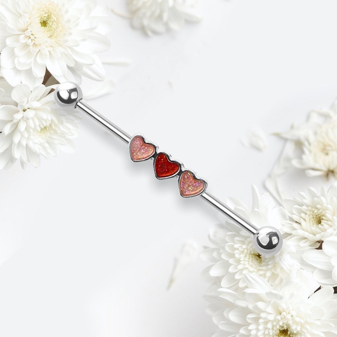 Cute and simple multicolored hearts industrial barbell.