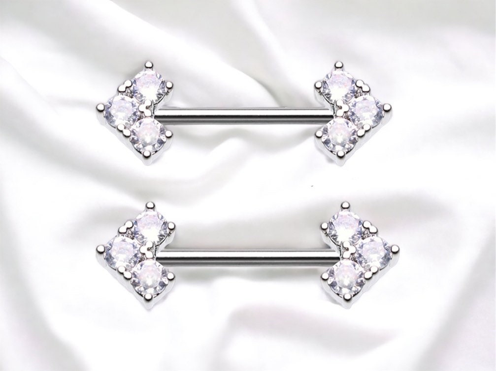 A set of cute and dainty sparkling gems nipple barbells. Add sparkle to your nipples with a pair of these.