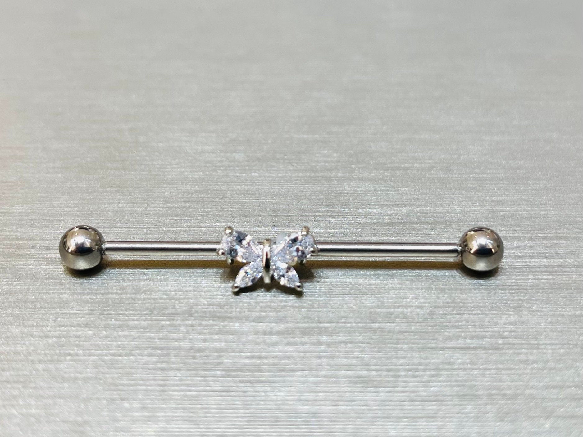 Cute and super dainty sparking clear stone butterfly industrial barbell.