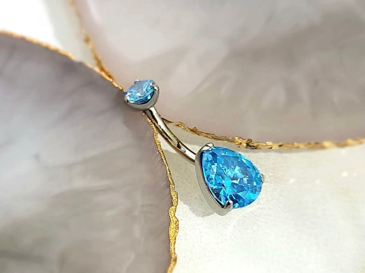 14G Silver Titanium Internally Threaded Pear Shape Stone Belly Button Ring Jewelry. Navel Piercing. Belly Button Piercing.