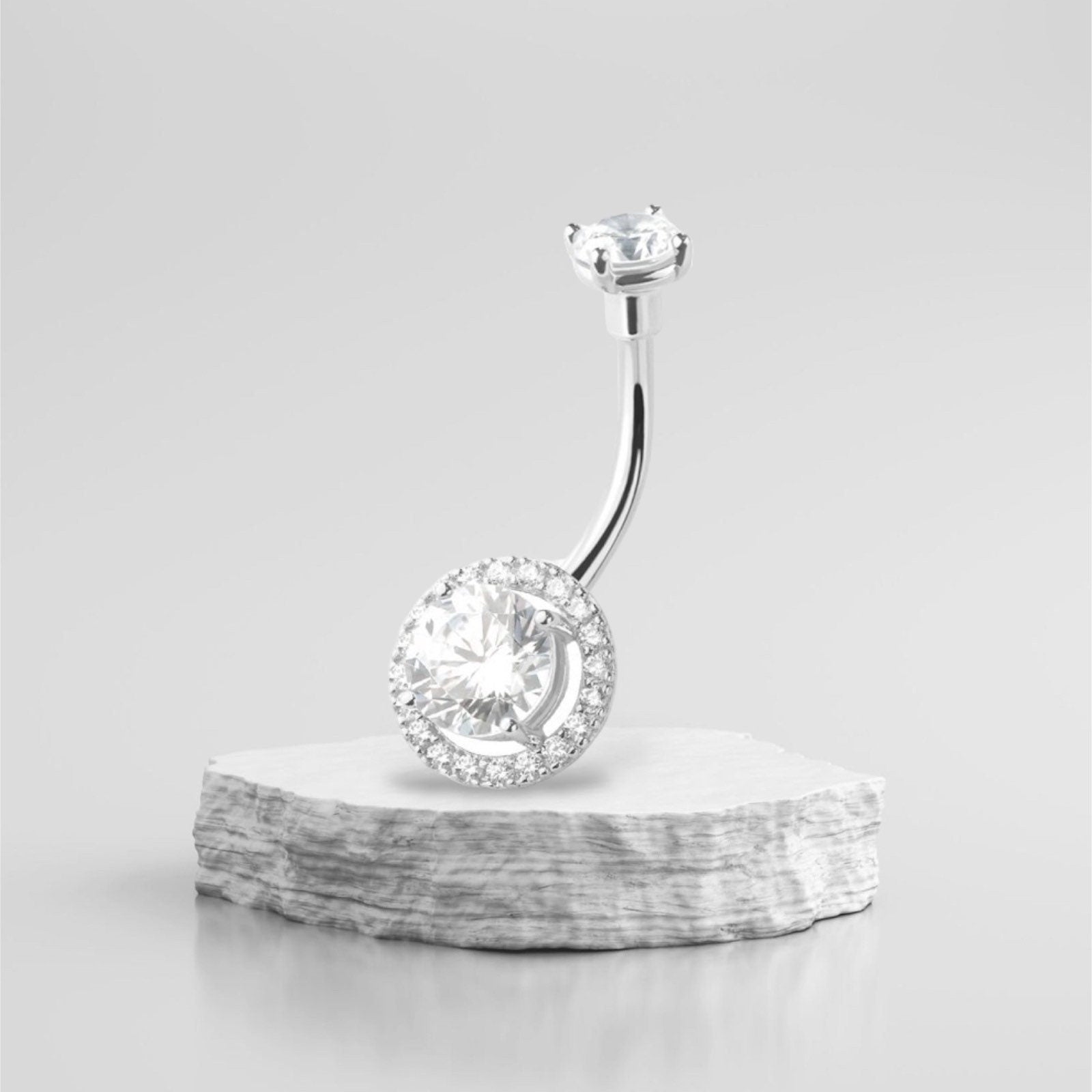 14k real gold belly button ring with clear gem center.