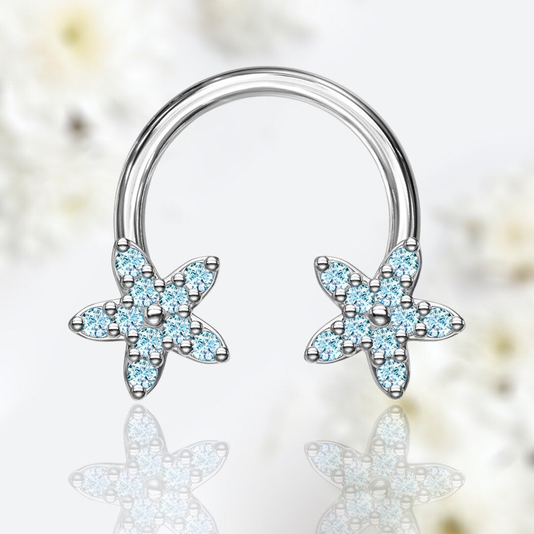 Adorable clear stone flower ends on 8MM circular horseshoe for septum, cartilage and tragus piercings.