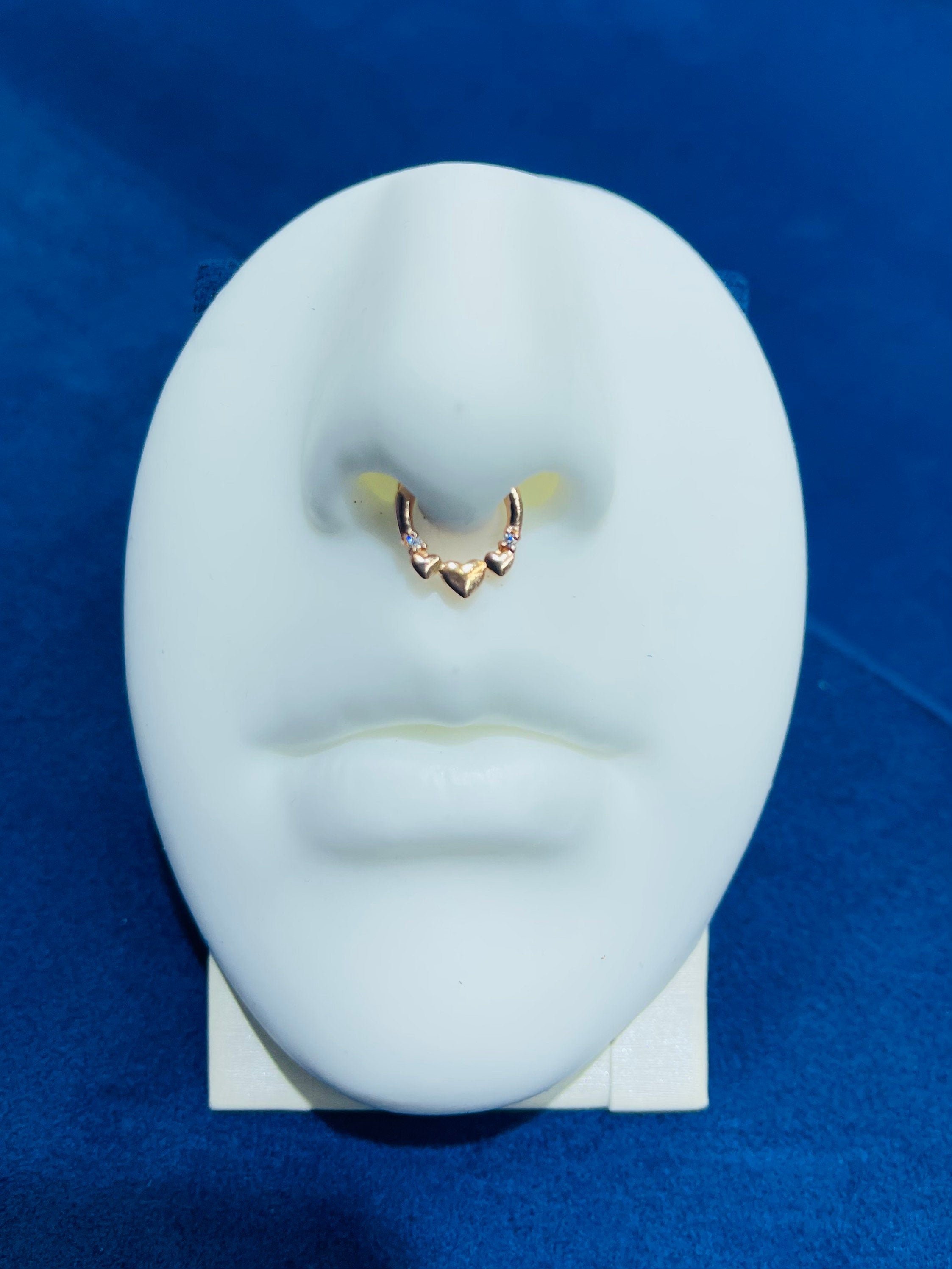Rose gold Triple heart with clear gems septum clicker ring. Also suitable for daith piercing,