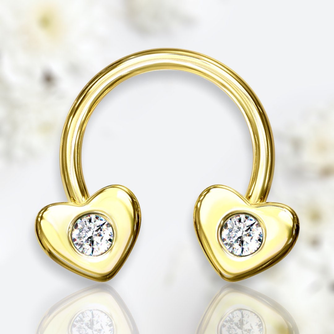 16G gold plated heart horseshoe suitable for septum and cartilage piercings.