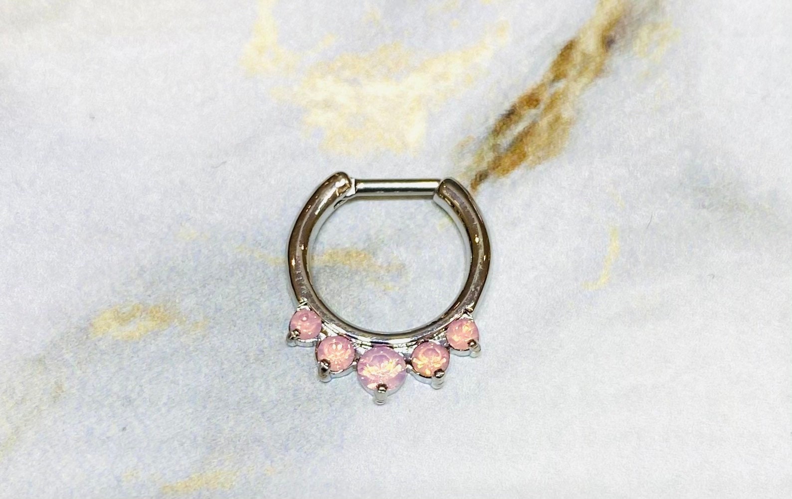 16g pink opal stones septum clicker.