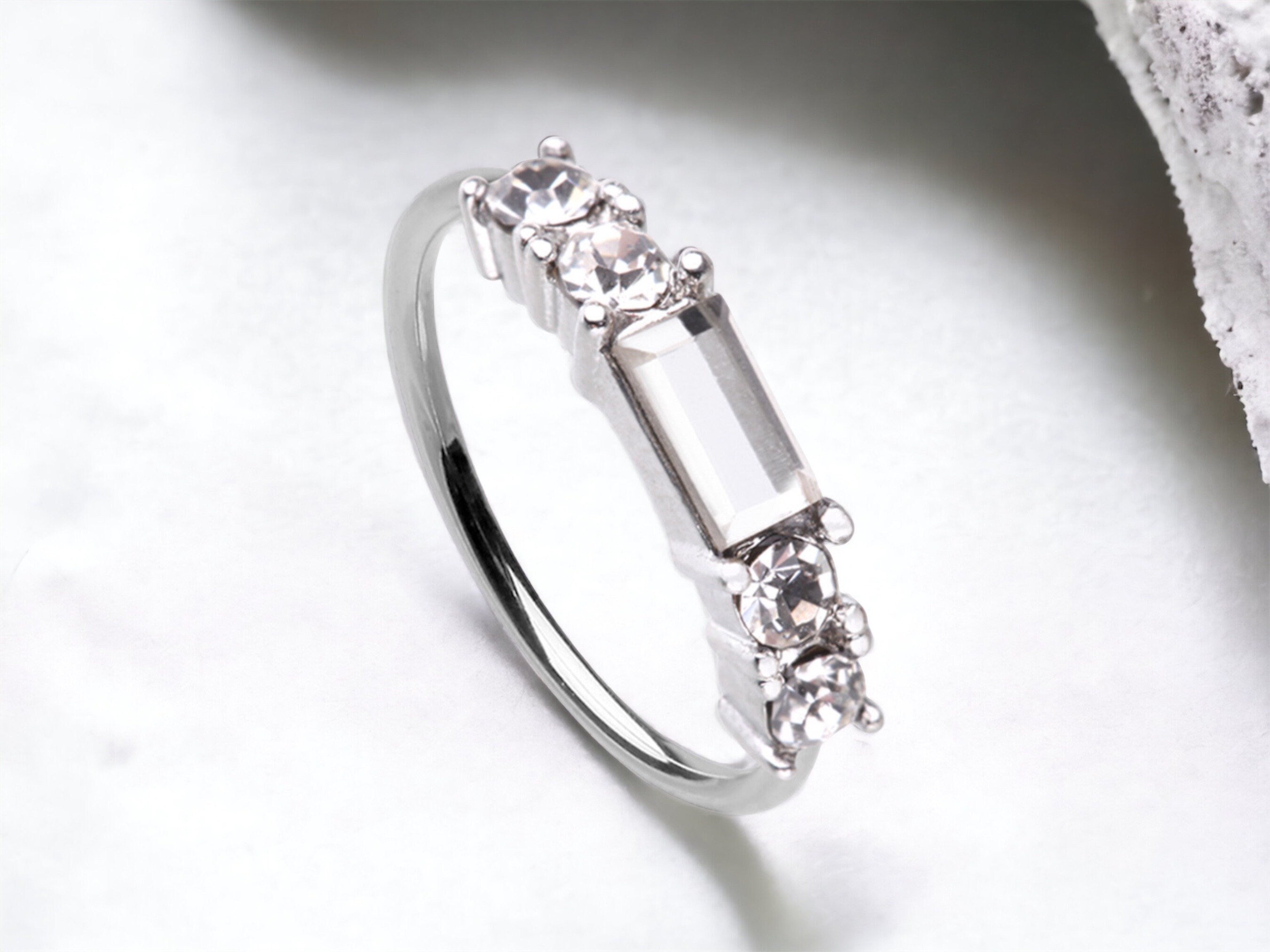 Dainty and adorable baguette gem center bendable nose hoop ring.