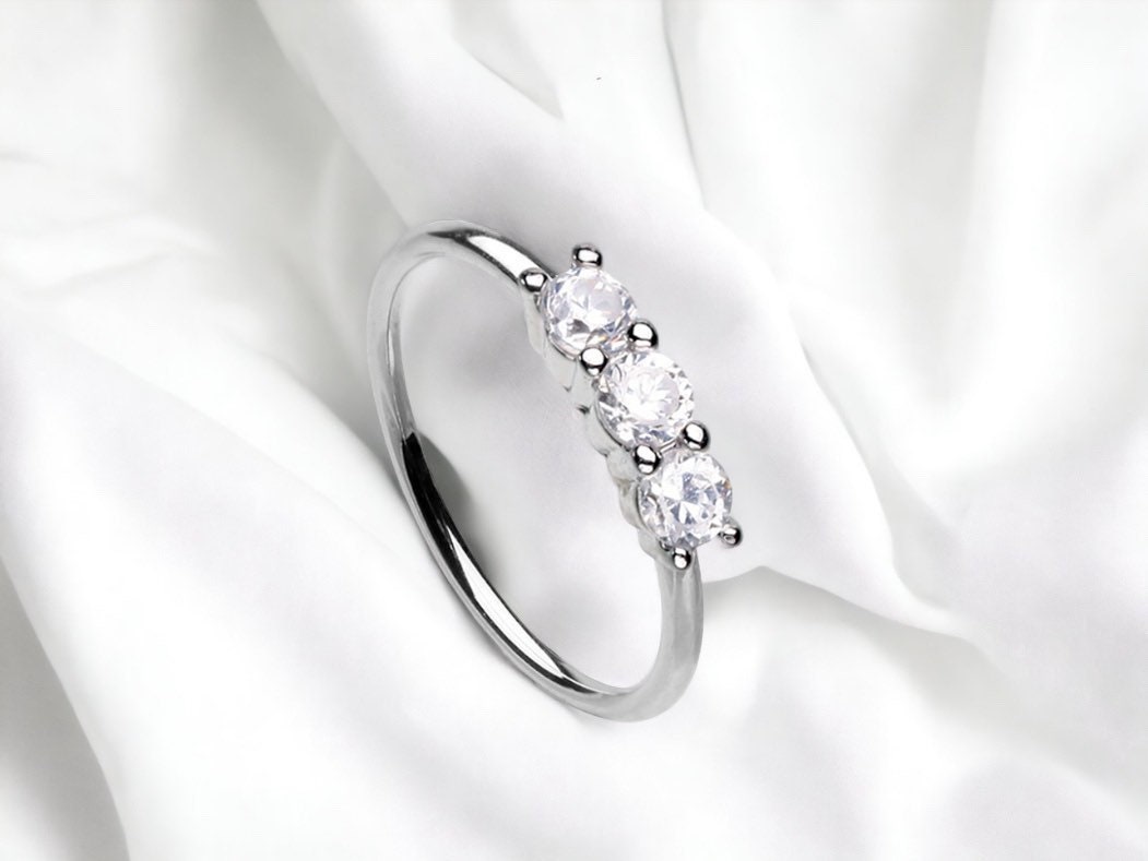 Dainty silver bendable hoop with clear gems that’s suitable for nose piercing, cartilage piercing & more.