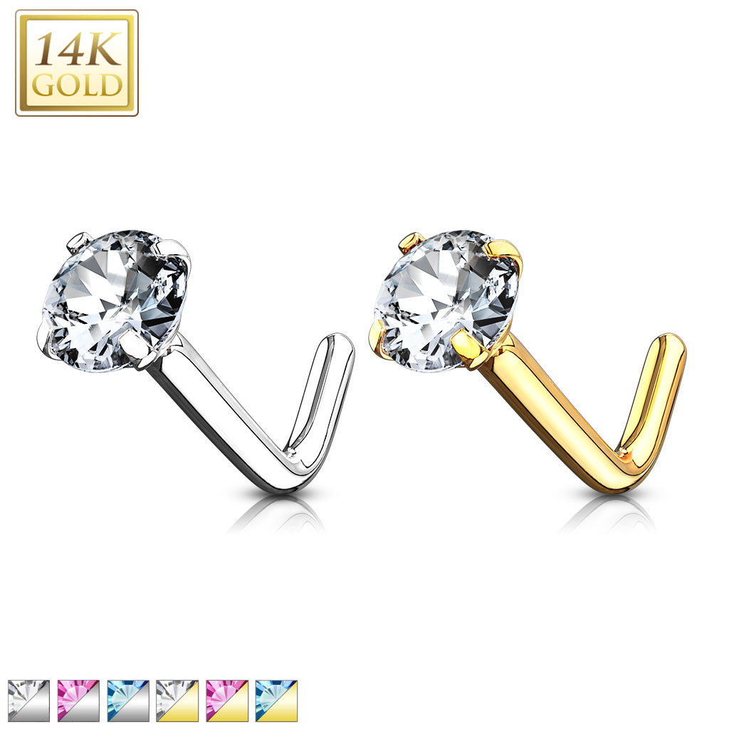 20G Gold Clear Top L Shape Nose Stud. Nose Piercing. Nose Stud