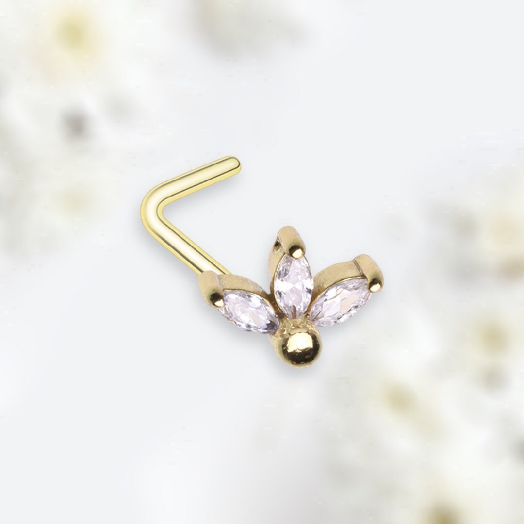 20G Gold Lotus Flower L Shape Nose Stud • Nose Piercing • Nose Jewelry