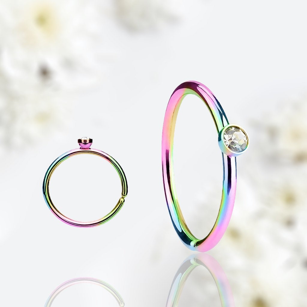 20G rainbow clear stone bendable hoop ring for nose and cartilage piercing.