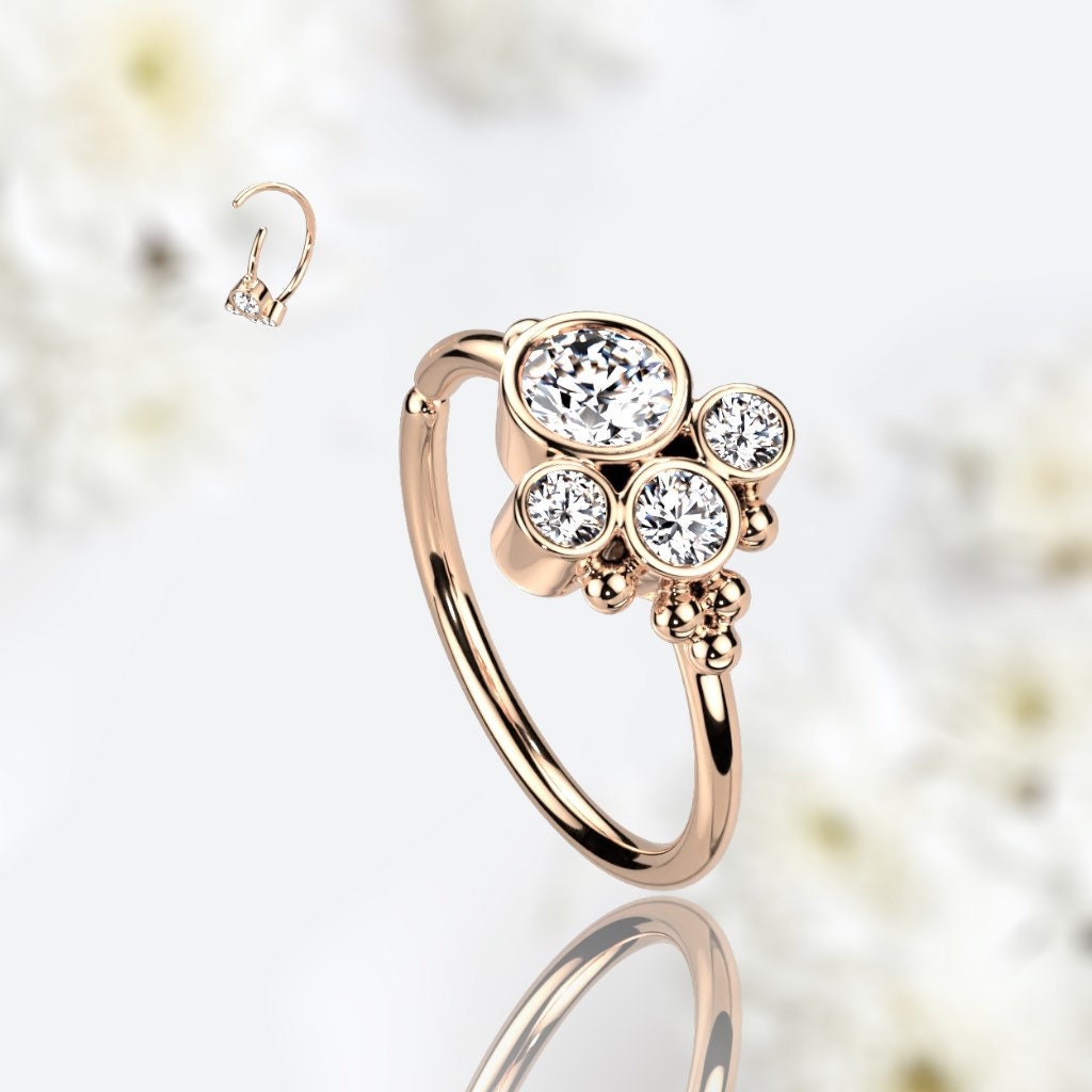 20d bendable hoop with round cluster stones for nose, cartilage piercing, tragus piercing & more.