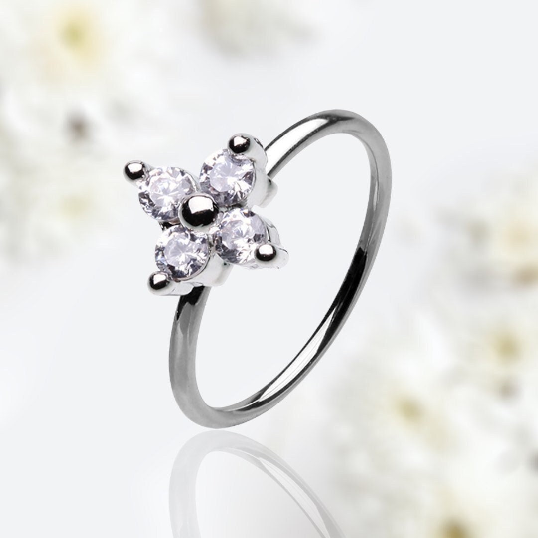 20G Silver Clear Gems Blossom Flower Bendable Nose Hoop