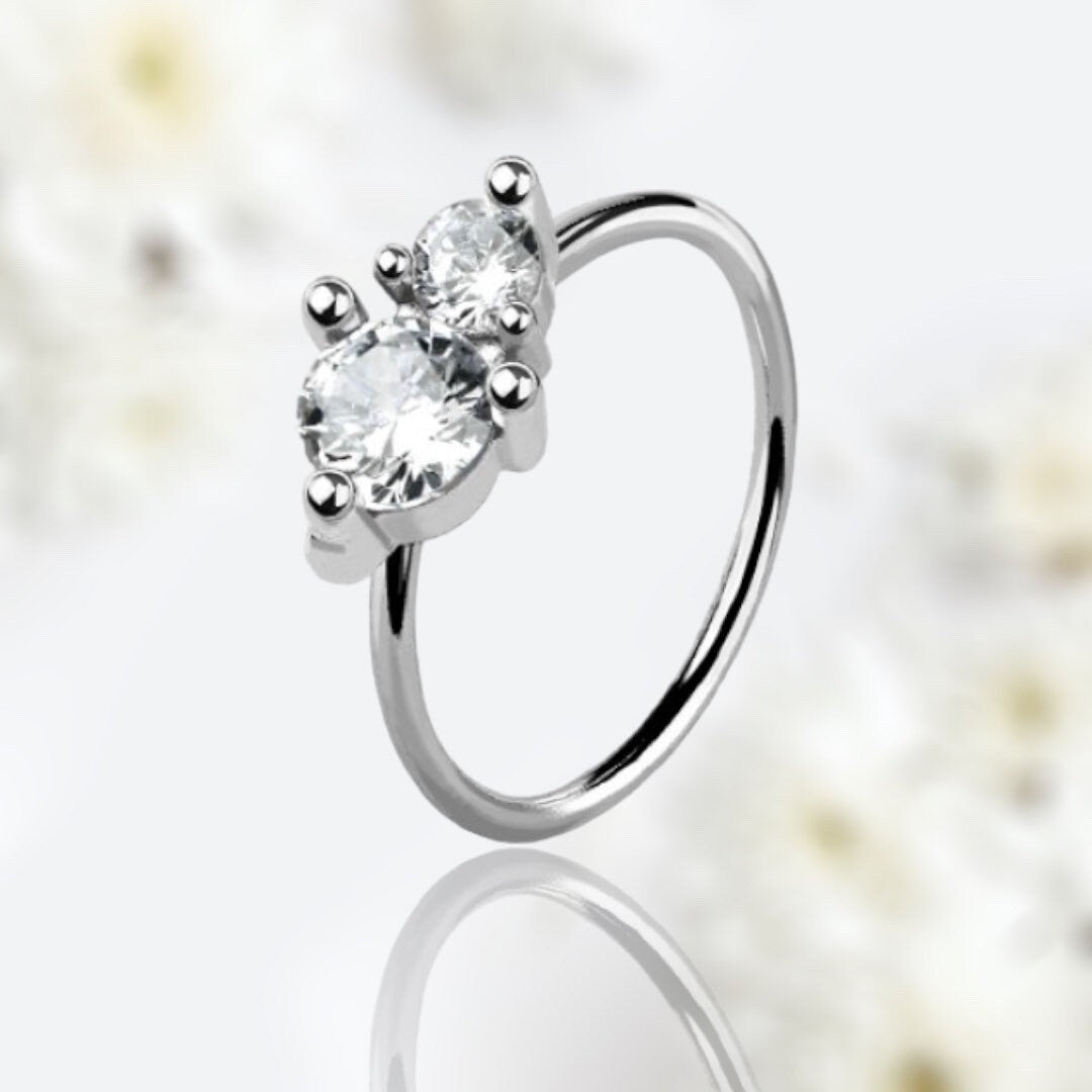 20G Silver Double Clear Gems Bendable Nose Hoop Cartilage Hoop Tragus Hoop