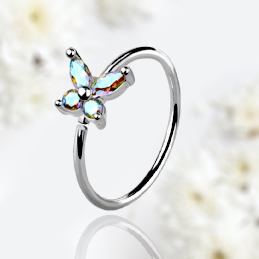 20G Silver Multicolor Butterfly Top Bendable Nose Hoop. Cartilage Hoop. Nose Ring. Nose Piercing.