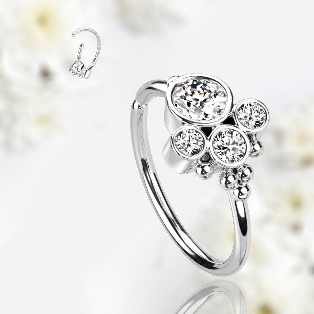 20d bendable hoop with round cluster stones for nose, cartilage piercing, tragus piercing & more.
