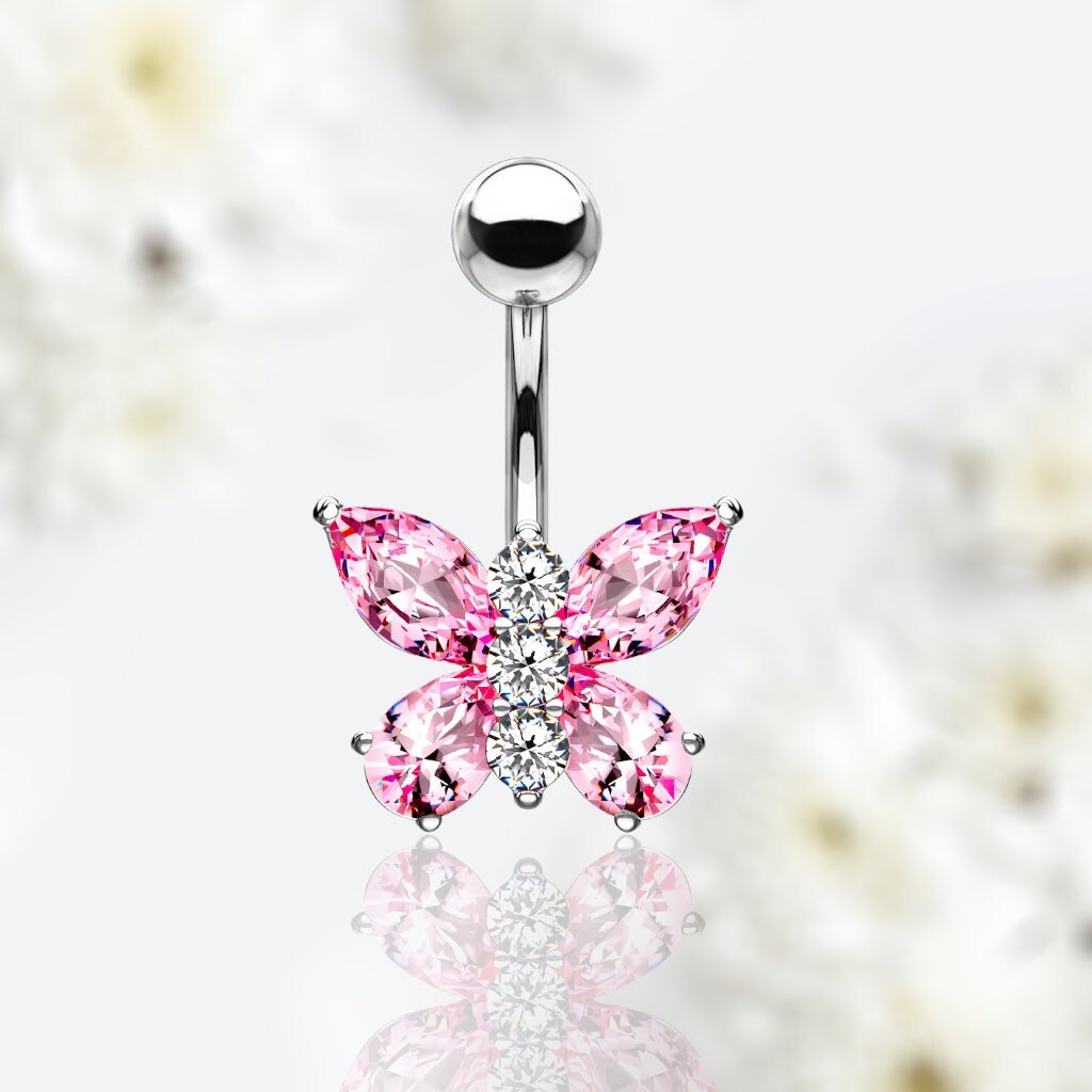 Cute and dainty two tone belly button ring with sparkling pink and clear stone.