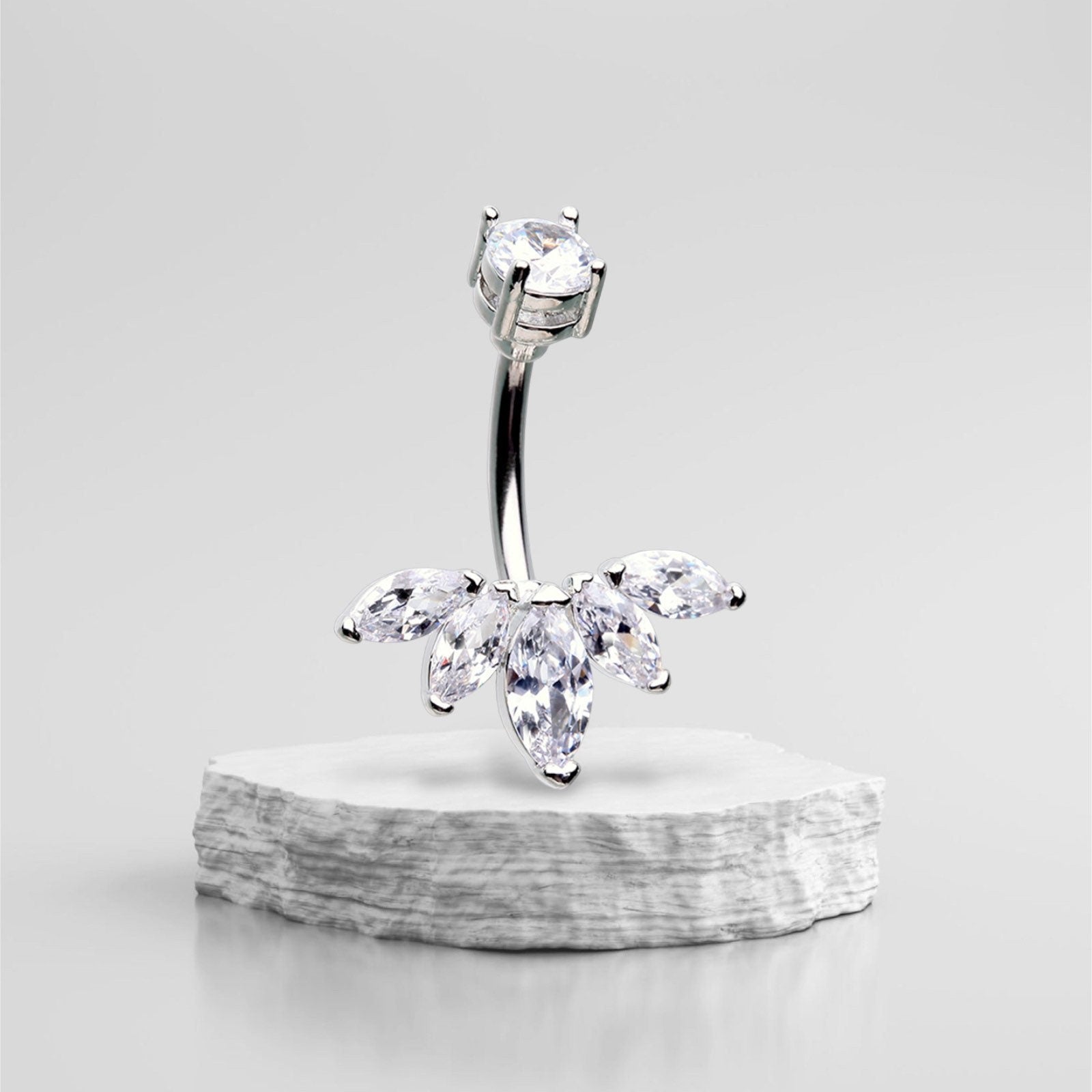 Dainty and minimalistic design clear gem lotus flower belly button ring.