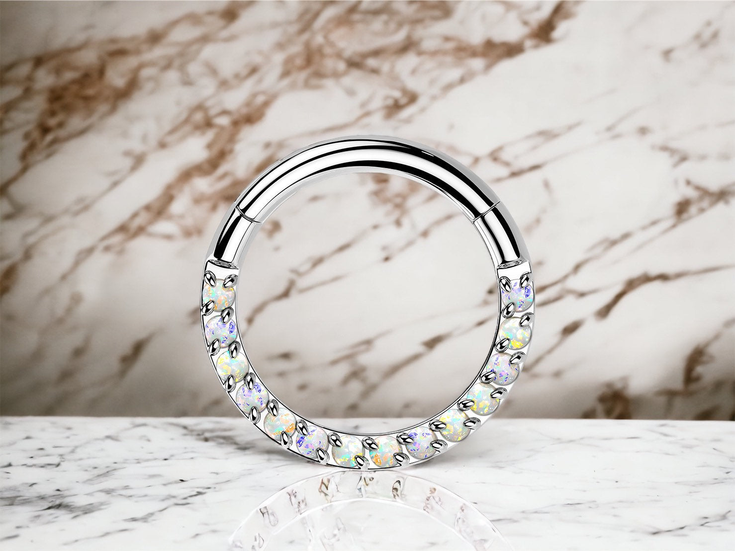 Dainty Titanium Silver Minimalist White Opal Hinged Septum Jewelry Clicker Nose Ring