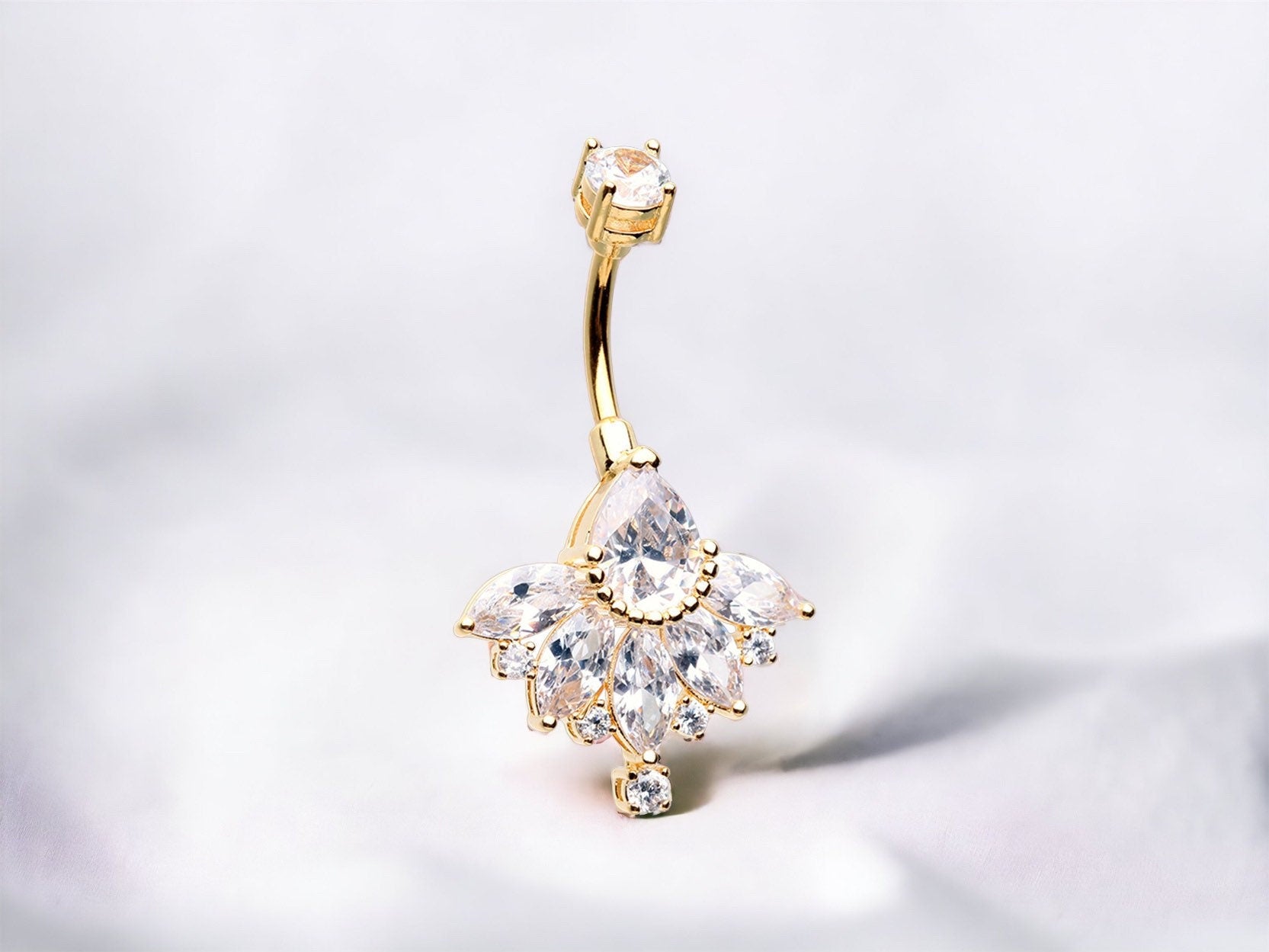 Simple and minimalist gold belly ring with clear Marquise gems.