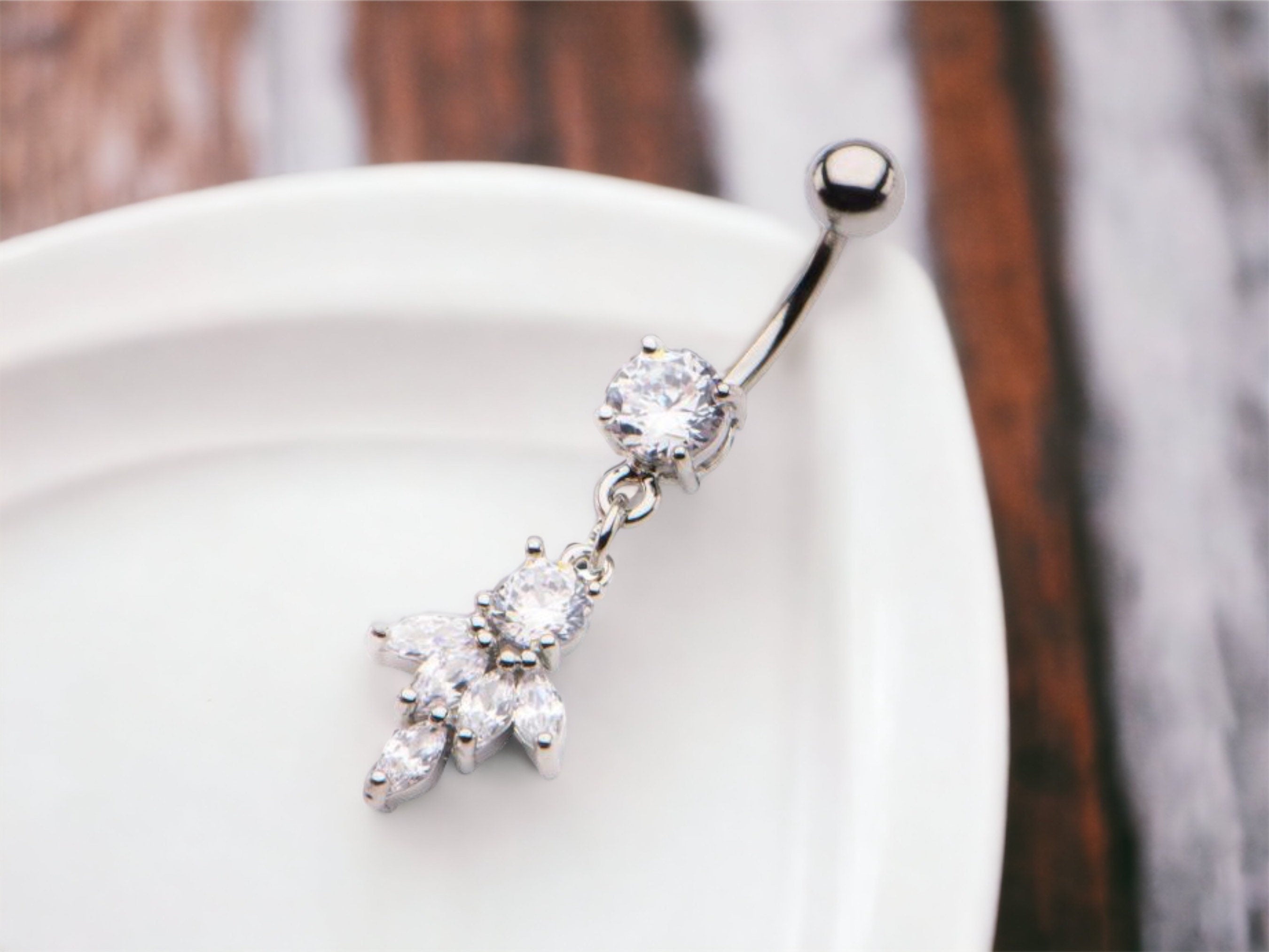 Adorable and cute clear gems dangling marquise and pear shape stones belly button ring.
