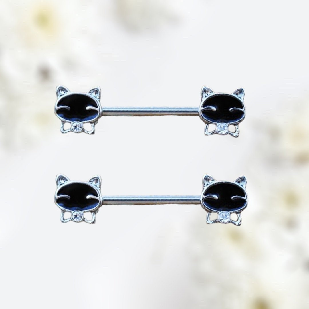 Pair of 14G Black Bow Tie Kitty Cat Nipple Barbell