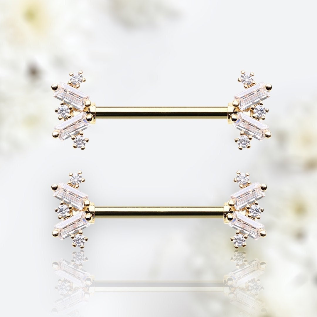 Set of dainty square and small round stones nipple barbells.