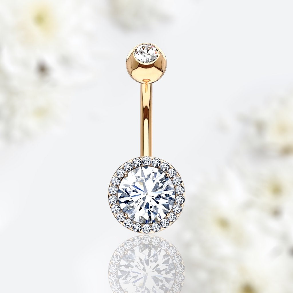 Dainty and minimal belly button ring with sparkling center stone.