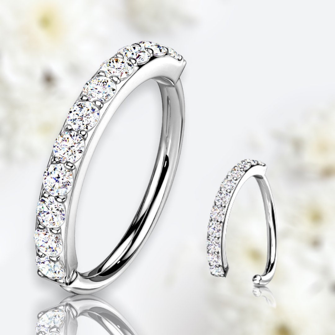 Silver 8MM 10MM Single Line Sparkling Stones Bendable Nose Hoop. Cartilage Hoop. Tragus Hoop. Helix Piercing. Nose Piercing. Nose Ring.