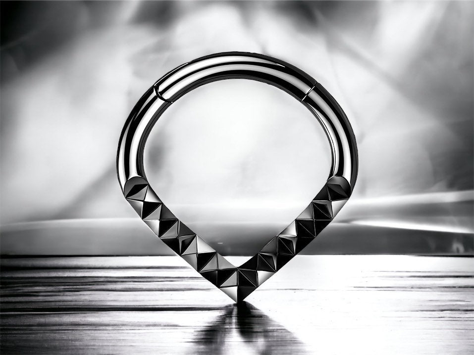 Implant grade titanium chevron with cut texture septum piercing clicker.